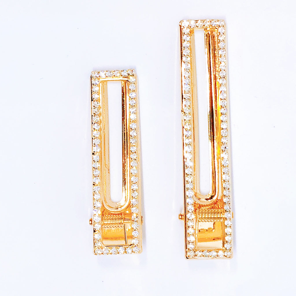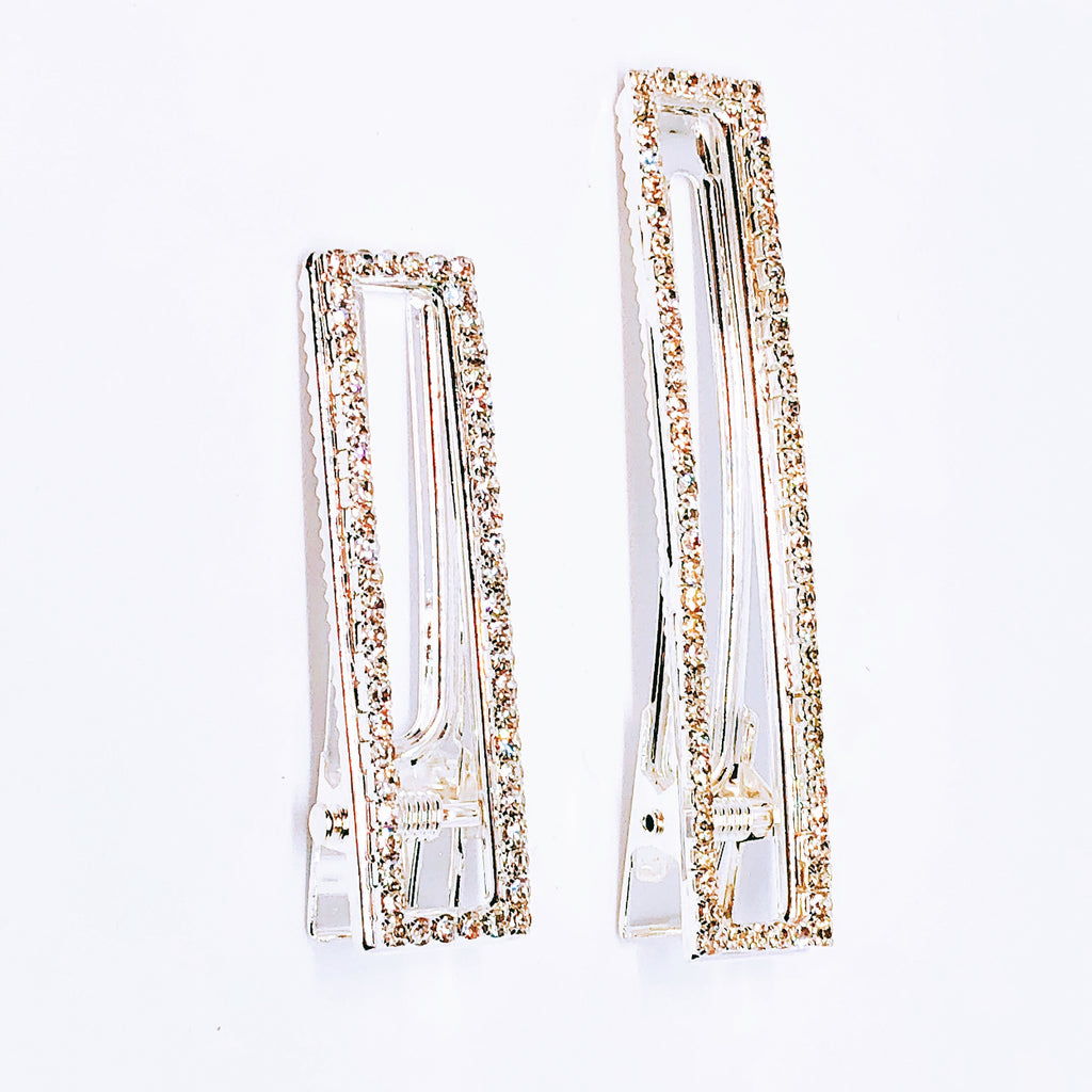 Rhinestone hair clips in gold and silver. Comes in a set with one small and large piece.